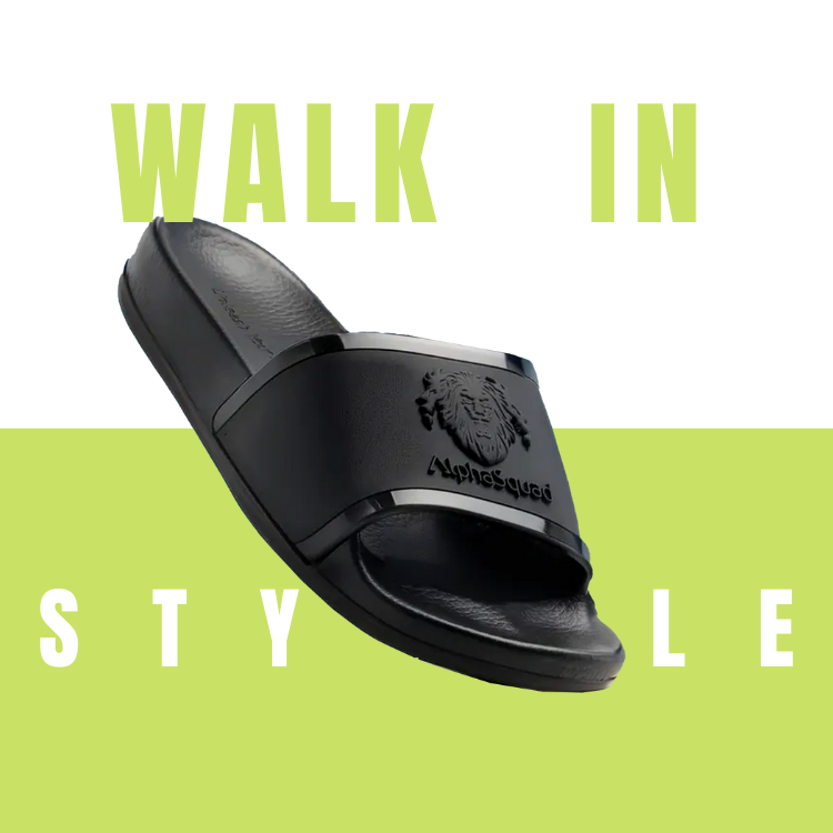 شبشب AlphaSquad المضاد للانزلاق، مناسب تمامًا للاسترخاء والاستحمام والشاطئ وحمام السباحة، شبشب ومنزلق للجنسين، أسود